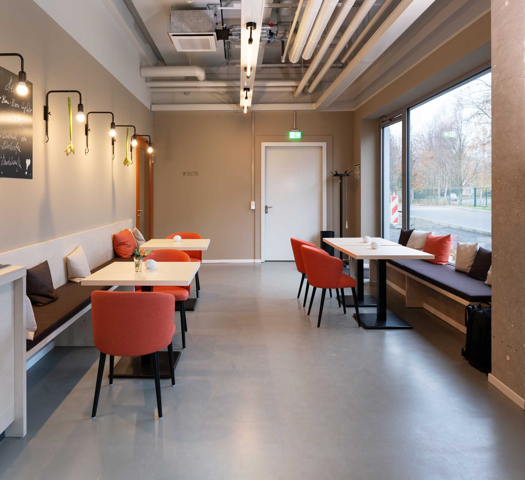 Unter betriebsnahen Voraussetzungen können sich die Teilnehmenden im kaufmännischen, gestalterischen, handwerklichen, hauswirtschaftlichen oder gastronomischen Bereich erproben und berufsrelevante Fähigkeiten sowie Fertigkeiten trainieren. Das Café mit seiner kleinen Rösterei und Konditorei eröffnet ihnen dabei anspruchsvolle Arbeitsfelder, um im direkten Kundenkontakt agieren zu können. Es schafft Raum für soziale Kontakte und Wertschätzung, stärkt das Selbstbewusstsein und fördert die Lebensfreude. Es unterstützt dabei, die Seele wieder in Balance zu bringen.